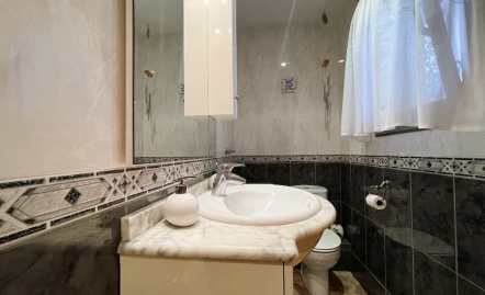 En la planta inferior, situada bajo el nivel de la calle, encontramos un amplio garaje con capacidad para 2 coches grandes o hasta 3 vehículos de tamaño estándar, además de espacio adicional de almacenaje gracias a un gran armario existente.